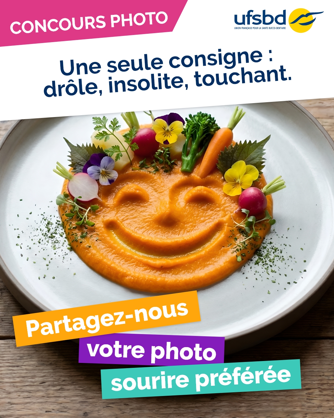 À l’occasion de le Journée Mondiale pour la Santé Bucco-Dentaire 2026, l’UFSBD est présente sur les réseaux sociaux grand public pour affirmer l’importance de la santé bucco-dentaire comme un élément majeur et indissociable de la santé générale. Prendre soin de sa santé orale à chaque âge de la vie pour vieillir en bonne santé. Ce message prend la forme sur Facebook d’un concours autour du livre « Le Goût de l’Age » récemment publié par la Fondation de l'Académie de Médecine et de la vidéo "Sourire et Bien-Vieillir" réalisée avec le soutien de LA POSTE Santé Autonomie, et sur Instagram avec un concours photo autour du sourire avec des brosses à dents @Myvariations à gagner