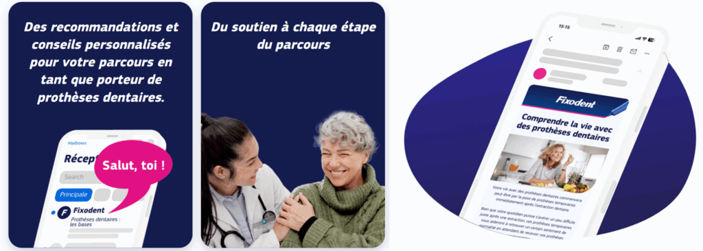 Chaque message est adapté à étape dans laquelle vous vous trouvez dans votre parcours de porteur de prothèse, que vous veniez de planifier votre extraction dentaire ou que vous soyez un porteur de longue date.