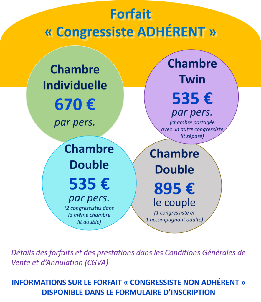 Pour rappel : aucun transport aller/retour (ville de provenance/lieu de congrès) ni navettes ne sont prévus dans les tarifs proposés